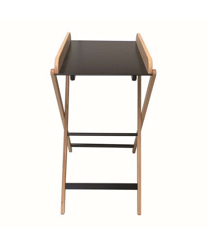 - 55 x 82 cm ; 2 hauteurs de réglage: 87 et 94 cm. Table pliée, épaisseur 14 cm